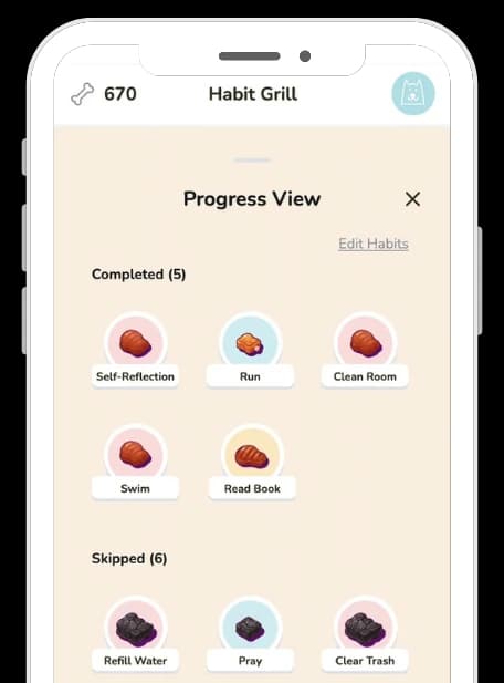 Track daily habits by cooking them on the grill. Watch them cook or burn depending on your discipline.