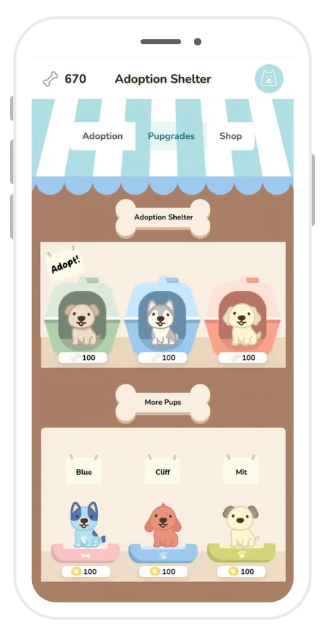 Earn rewards and adopt your own pup companion to join your habit journey.