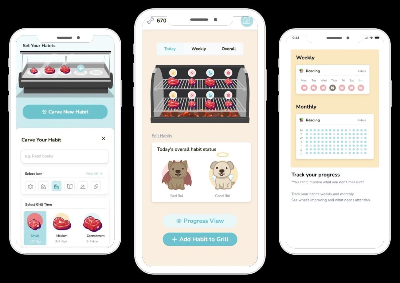 Cook habits on the grill, earn rewards, adopt pups, and see whether Good Boi or Bad Boi wins your day.